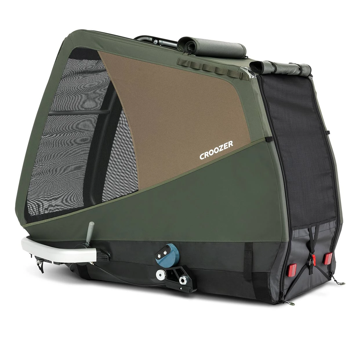 Fahrradanhänger für den Transport von großen Hunden bis 45 kg. Mit Croozer AirPad® Federung, geländetauglicher Bereifung und komfortablem Faltsystem.