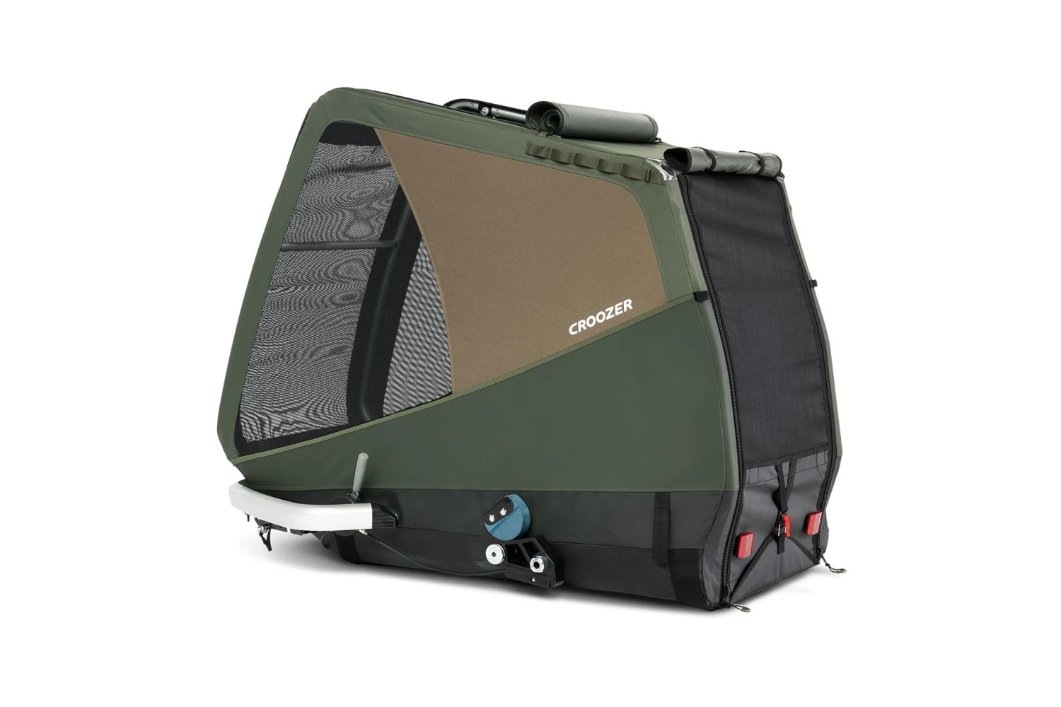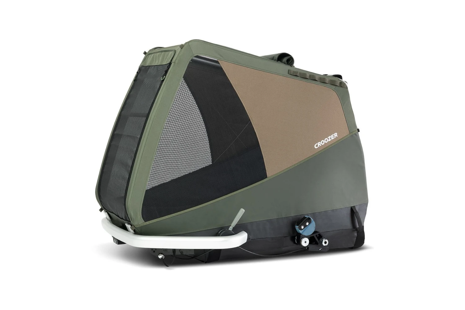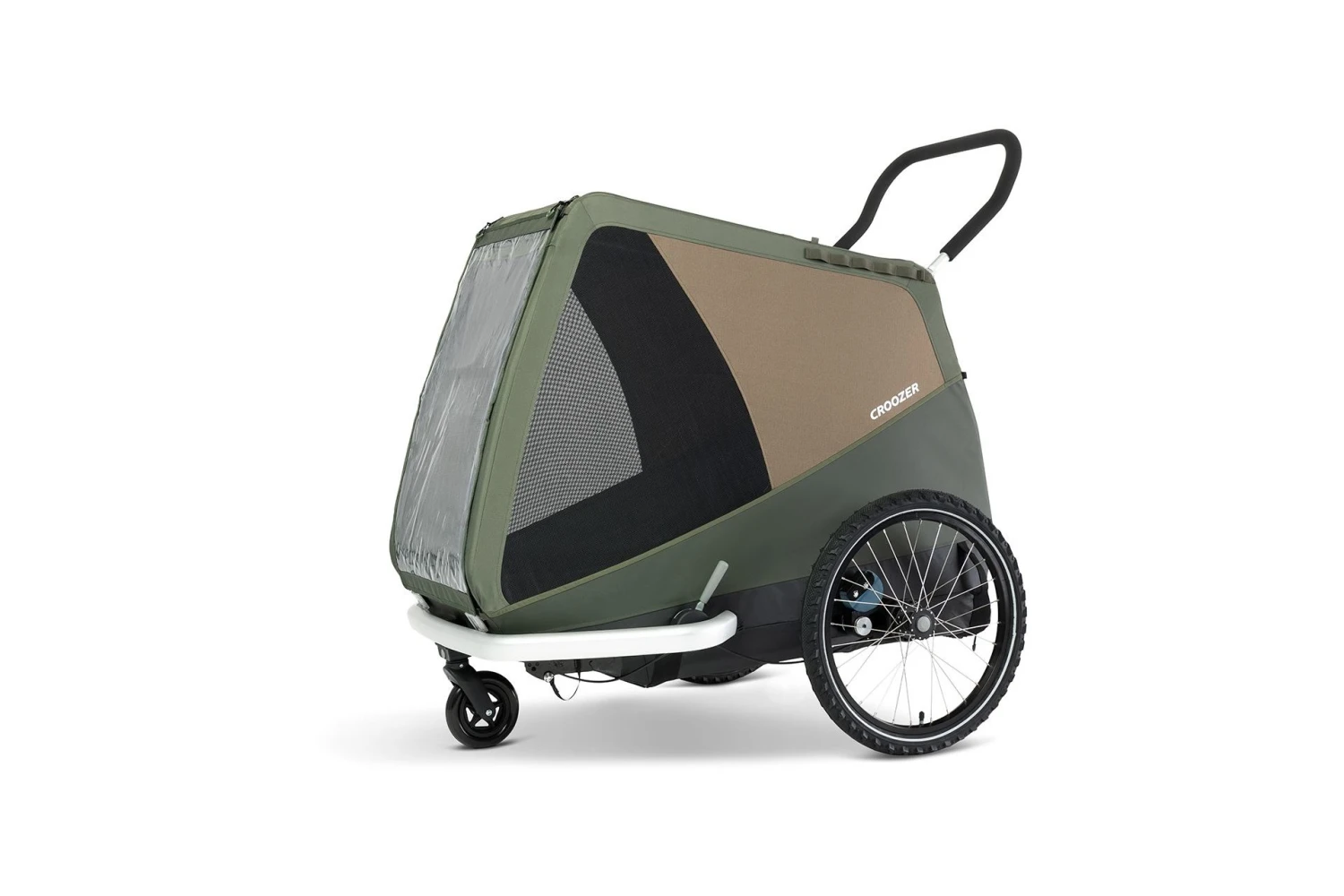 Fahrradanhänger für den Transport von mittelgroßen Hunden bis 45 kg. Mit Croozer AirPad® Federung, geländetauglicher Bereifung und komfortablem Faltsystem.